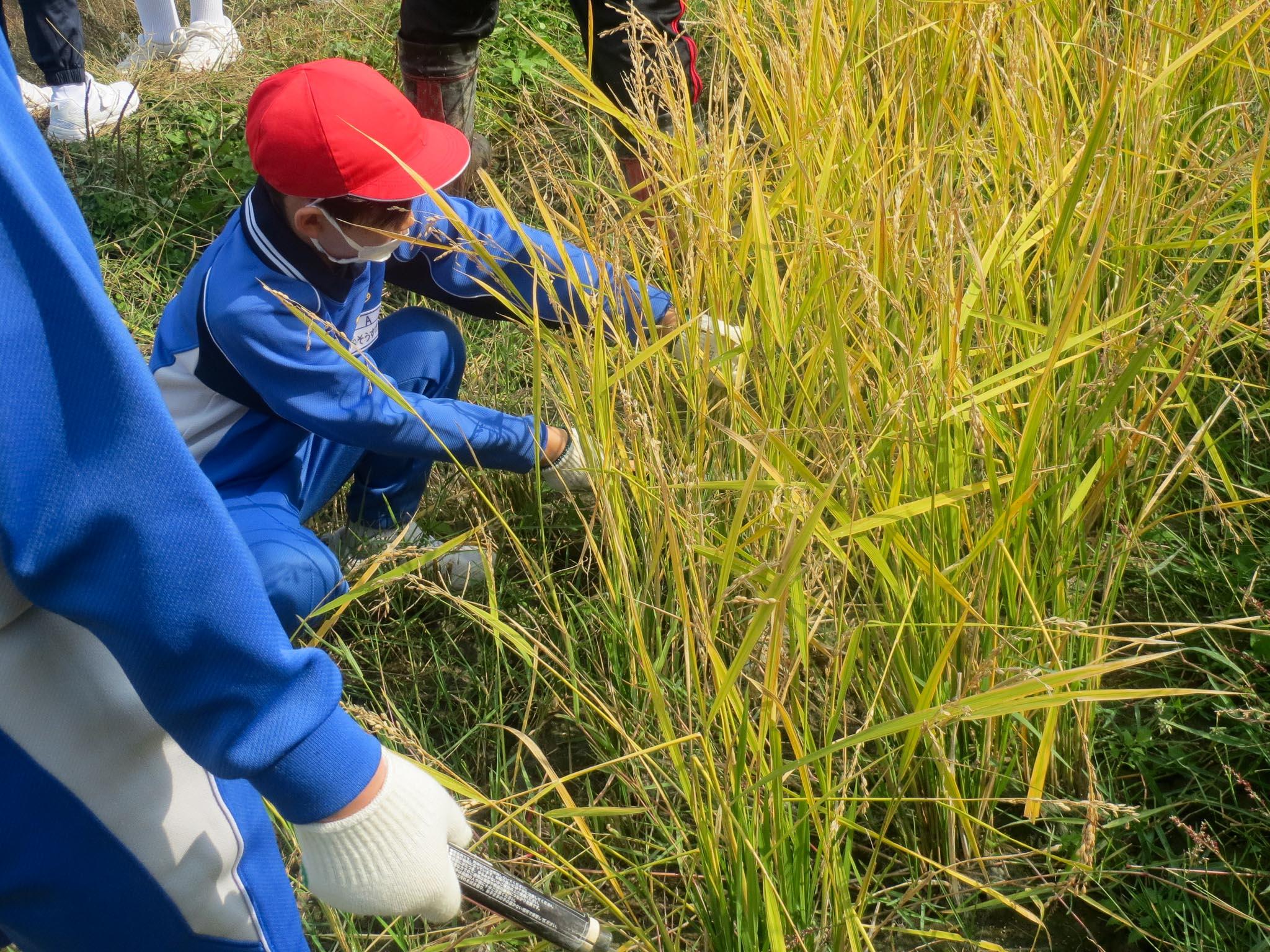 P3(小学3年)生とP4(小学4年)生の合同プロジェクトとして、春に田植えをしたイネの生長を見守りながら育ててきました。今年は、猛暑のためにイネの生育としては、それほど良い方ではありませんでしたが、でもやっとイネ刈りの日を迎えることができました。