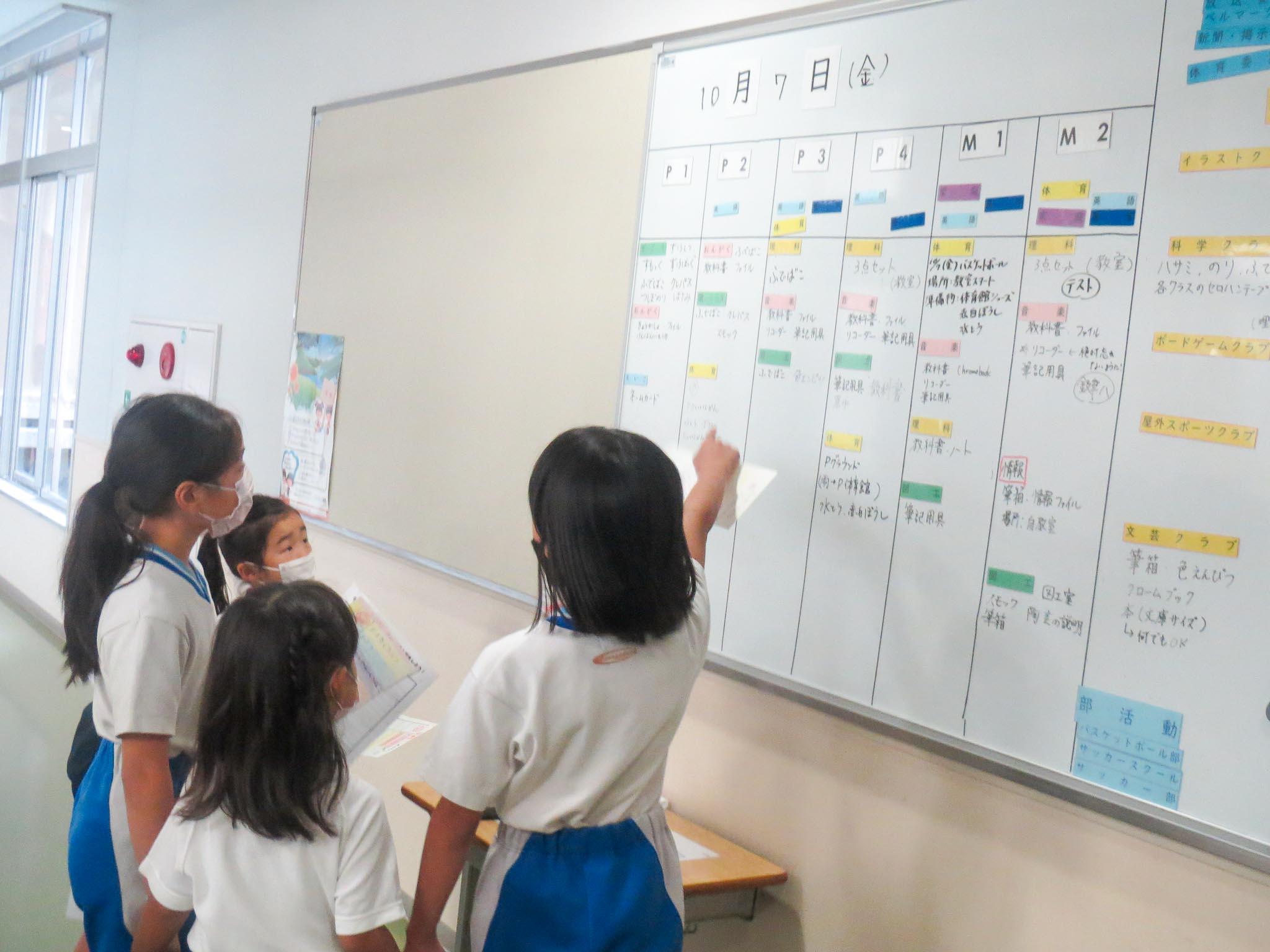 P3生は、事前にスタンプラリーのカードを手作りしてくれました。一人一人がとても丁寧に一生懸命作ったカードをもって学校探検です。