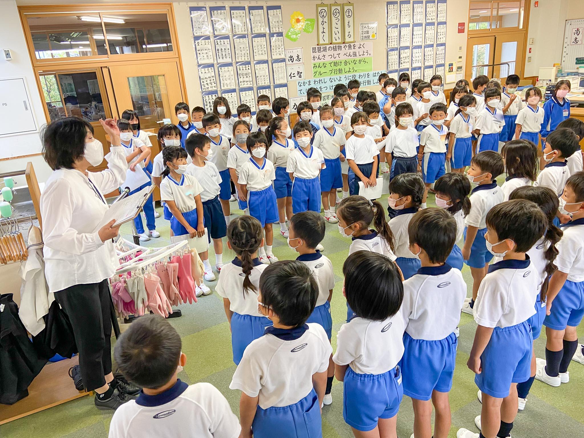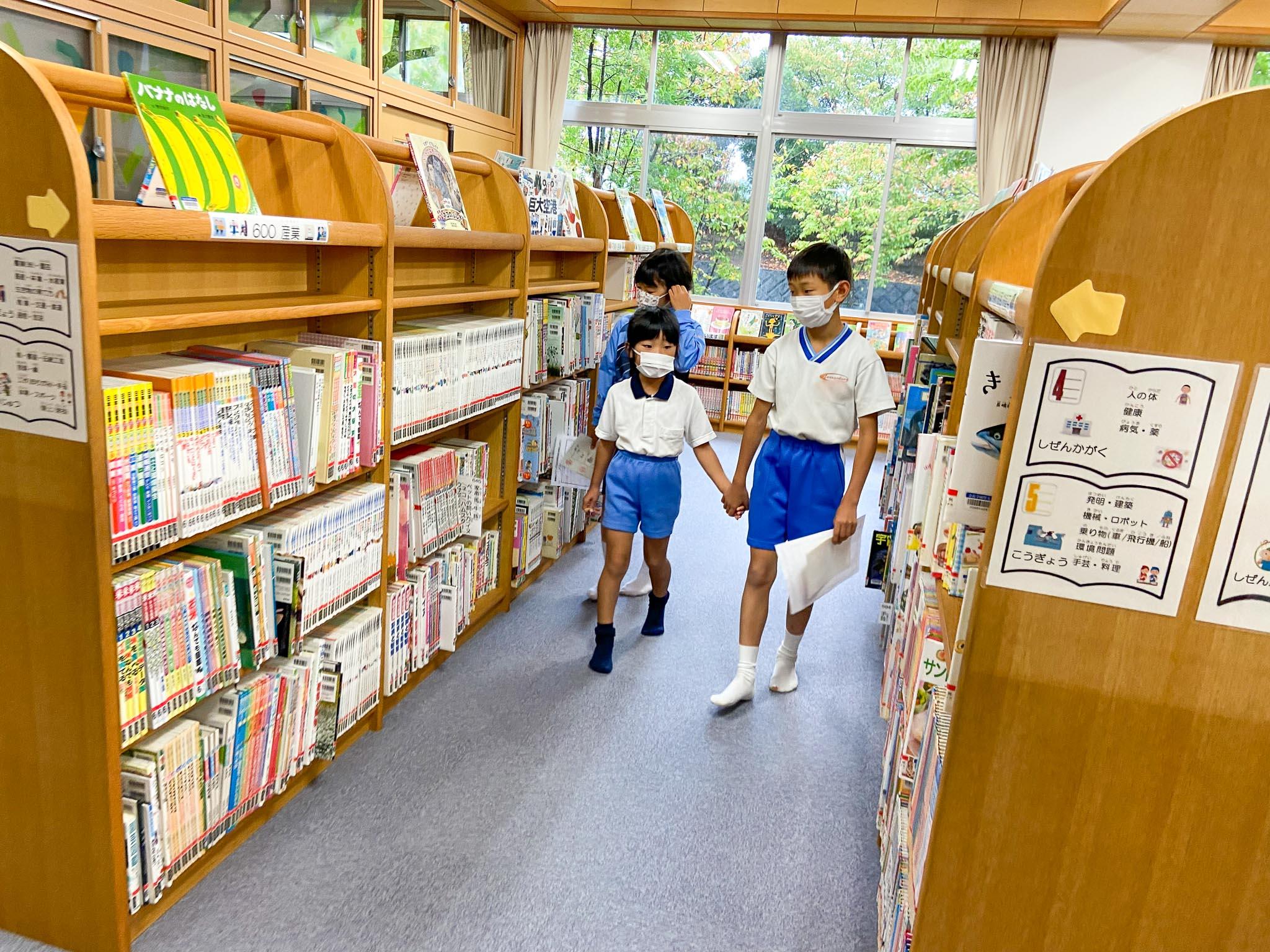 P3(小学3年)生とPP3(年長)が一緒に小学校の学校探検をしました。PP3の園児たちは、あと半年で卒園という時期を迎えています。小学校にはどんなところがあるのか、P3生の案内に興味津々です。