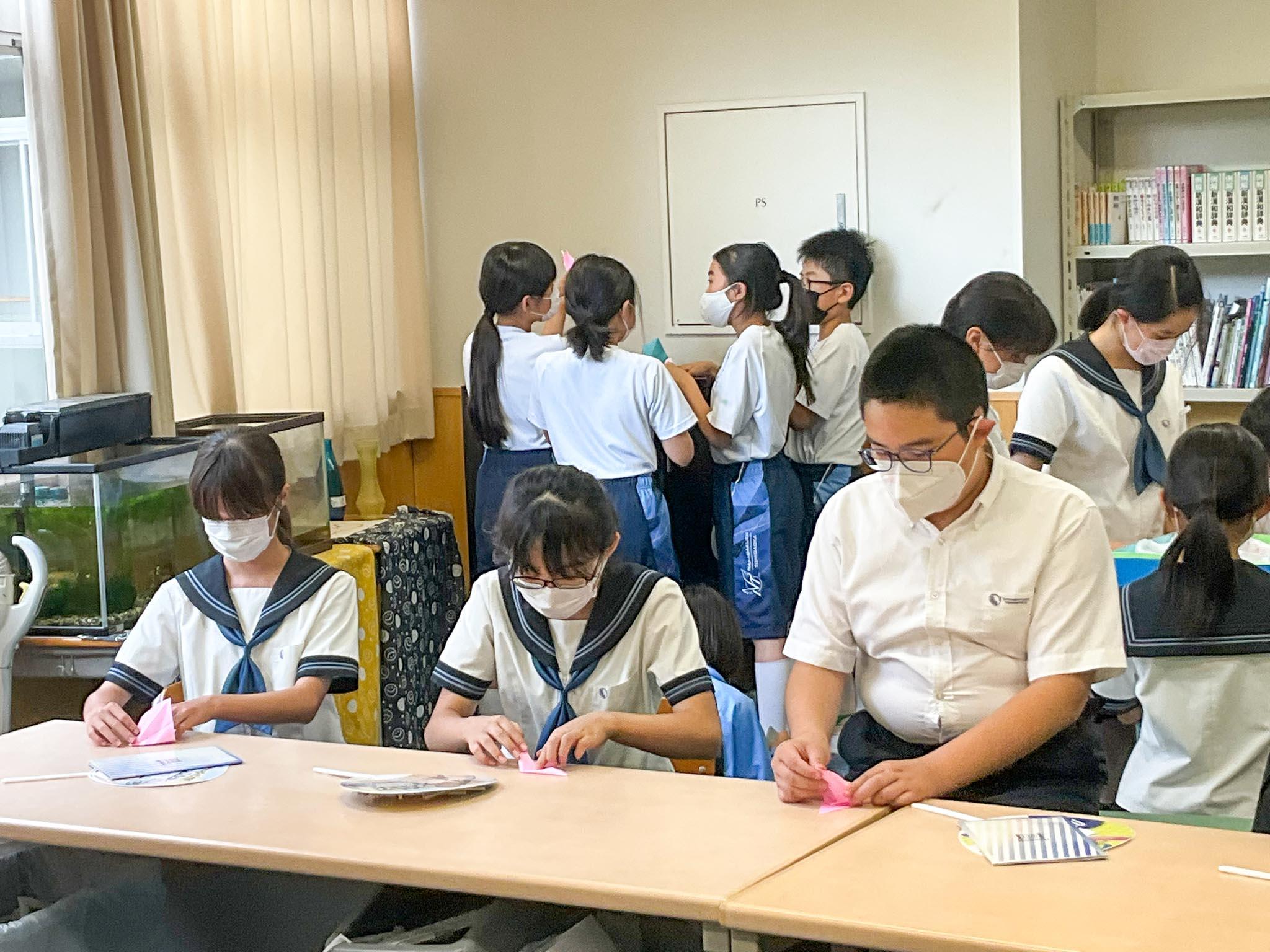 自由に他の学年を回れる時間帯は、M3以上の学年に行くことはもちろんですが、M1学年を訪問して、昨年、自分たちも取り組んだ折り鶴を折る姿も見られました。