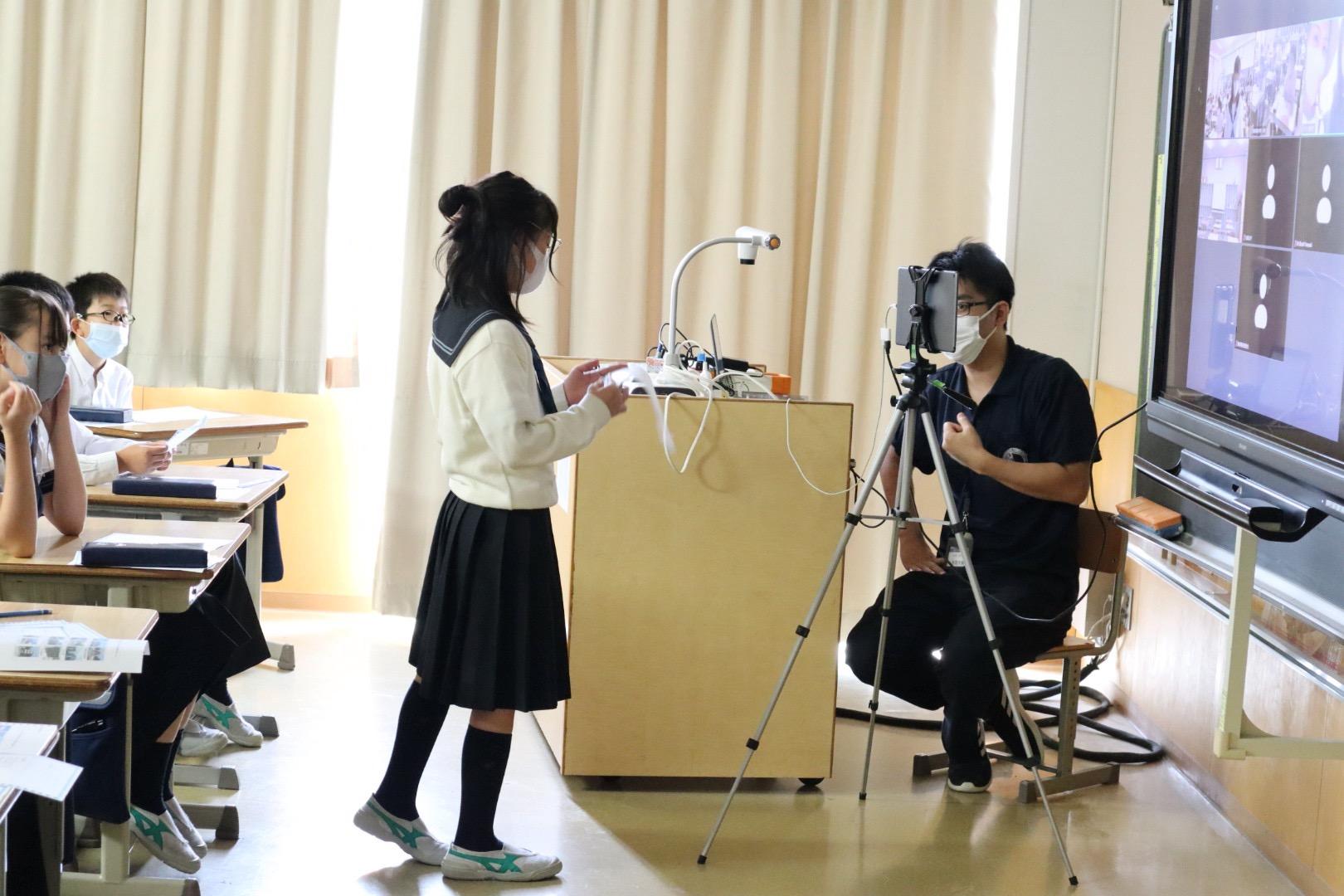 「私は広島に行ったことがありません。でも、今日のバーチャルツアーで広島のこと、原爆のことを知ることができました。私は、平和の鐘に興味を持ちました。広島に平和の鐘があることは知っていましたが、鐘には地図が書いてあることや、その地図には国境を表さないという意味が込められていることは知りませんでした。また、平和の鐘は、なぜてっぺんが丸くなっているのか調べたくなりました。11月、実際に広島に行って、今日知ったこと、または、今、自分が知っている知識と比べ、平和とはどのようなものなのか考えたいです。今、私が思っている平和とは、それぞれの国が意見を交流し合い、けんかのない世界ということかなと思っています。でも、広島に行った後、もっとくわしく説明ができればなと思いました」