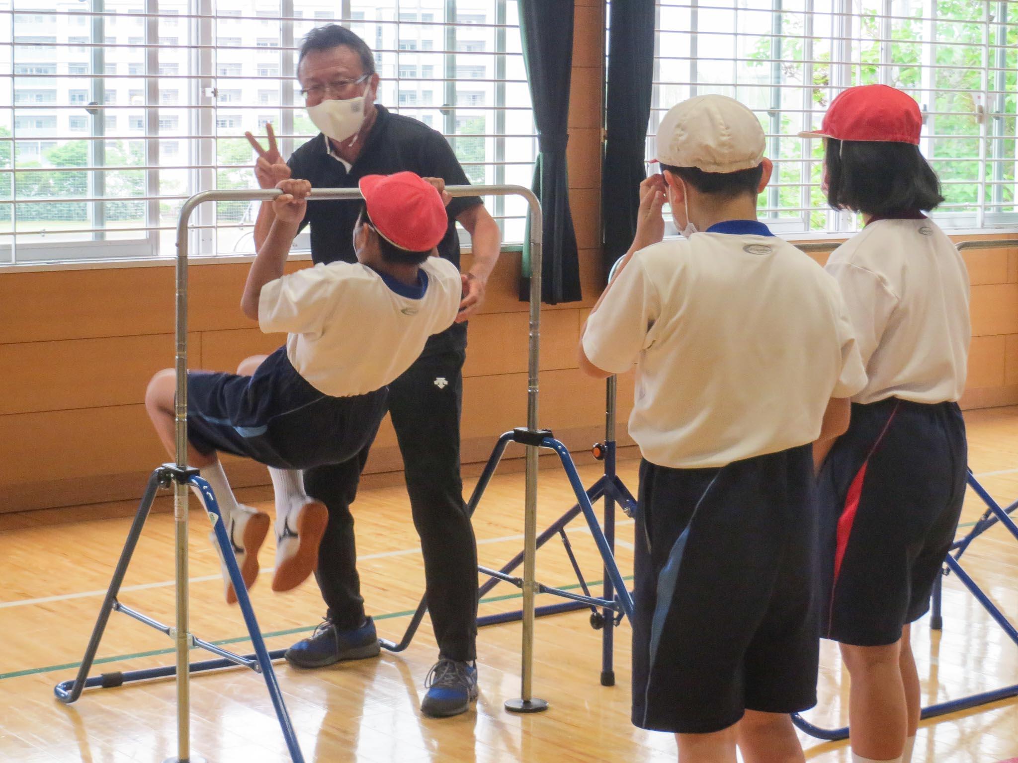 パンチングボールを打つ肩の力や鉄棒にぶら下がる腕の力が全体的に弱いのが本校の子どもたちの課題でもあったのです。でも、今回の基礎体力チェックでスッパマン先生はびっくりしたと話してくださいました。ずいぶん力が付いてきている!と。毎朝のストレッチや一日一回のオープンスペースでの鉄棒ぶら下がりの継続や体育の時間での取り組みなどが、子どもたちの力になっているのでしょうねとおっしゃってくださいました。