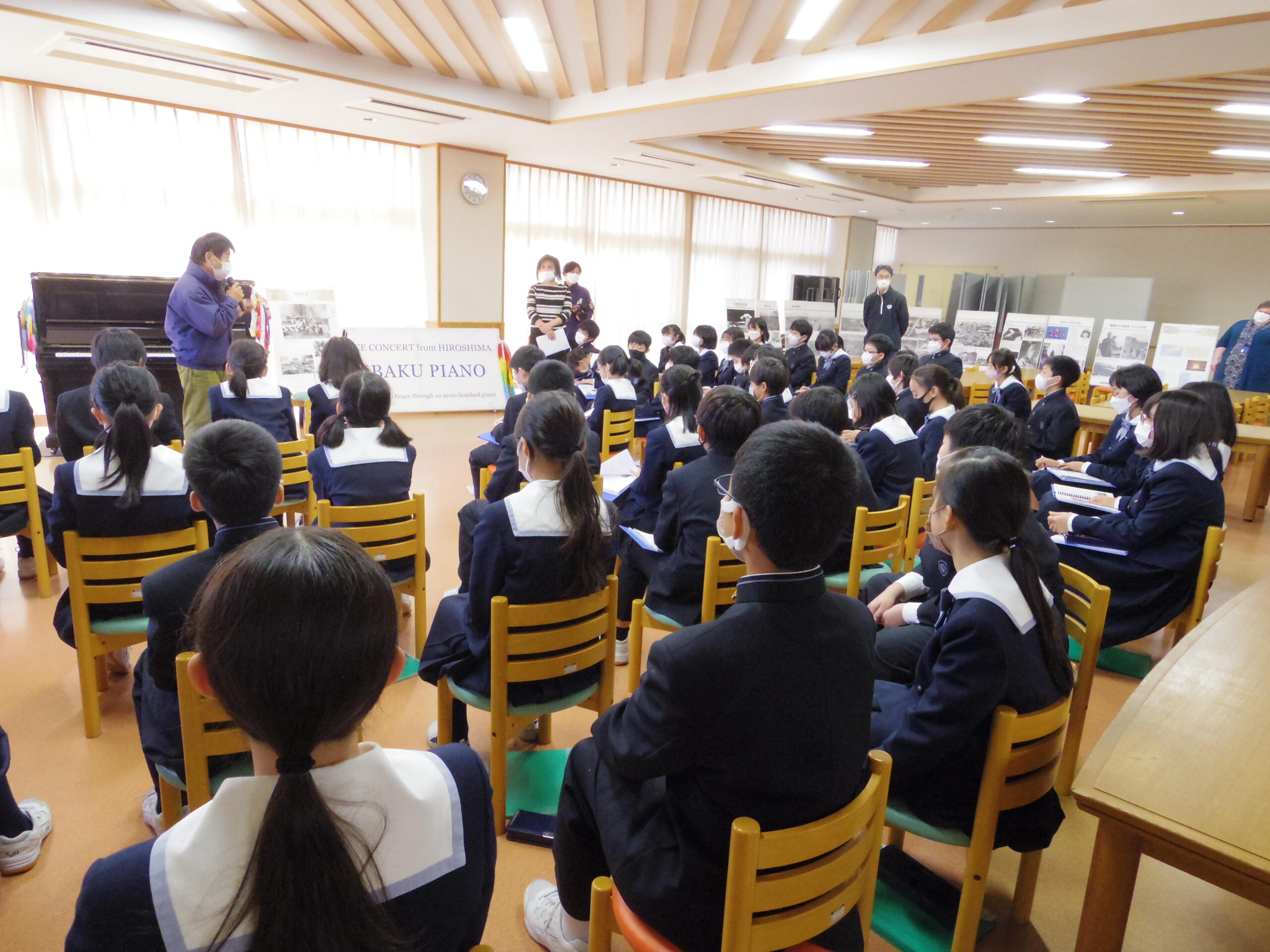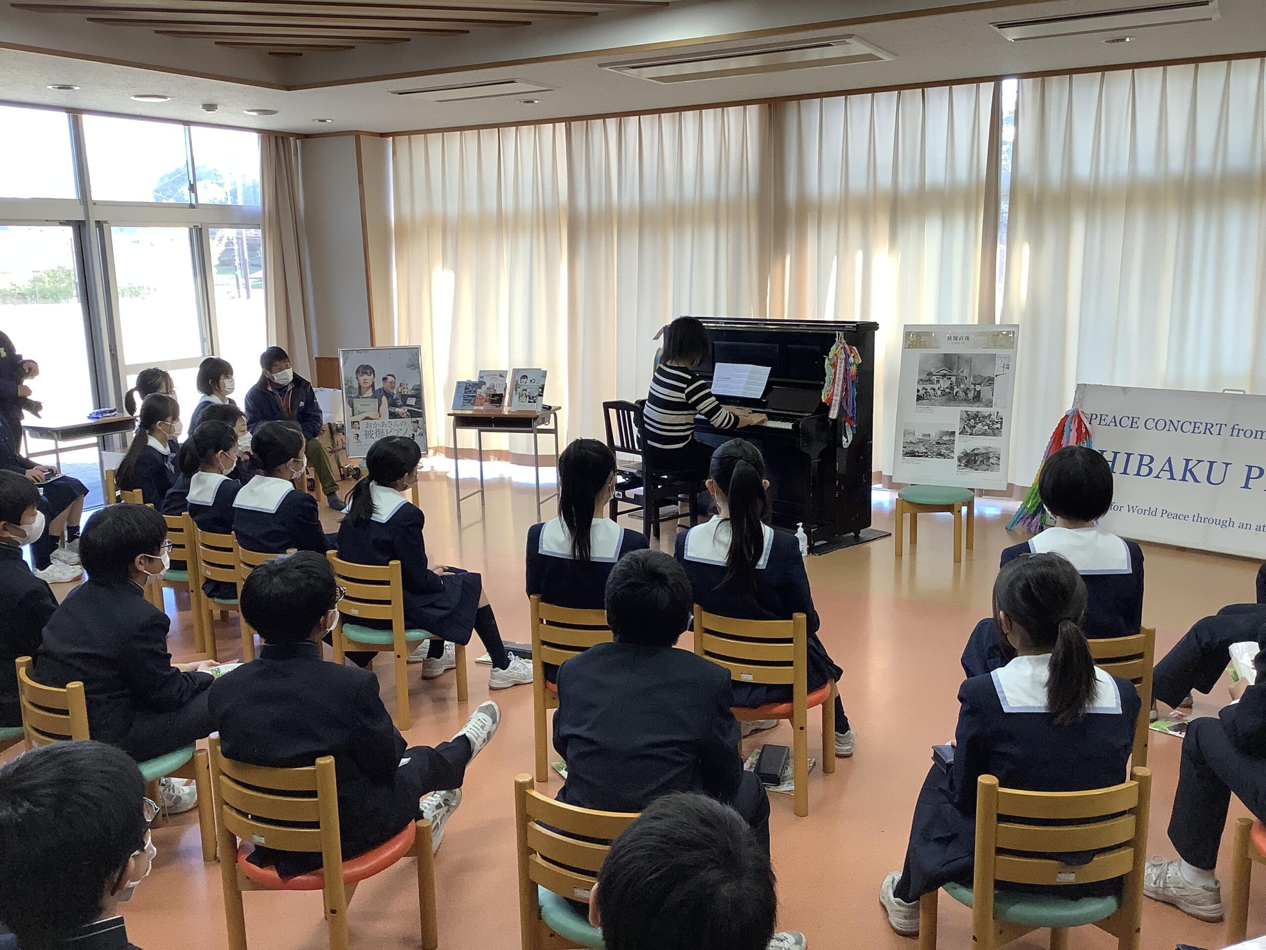 そして、18日(木)は、広島から被爆ピアノを運んでもらい、学校でプチコンサートをしました。