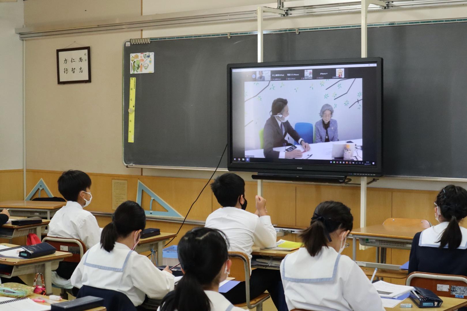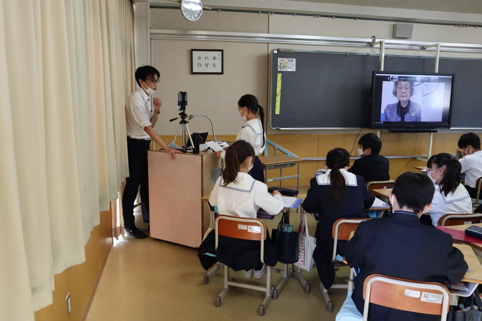17日(水)はヒロシマと教室を結んで、被爆体験者の梶本淑子さんとの交流とオンラインヒロシマ街歩きをしました。