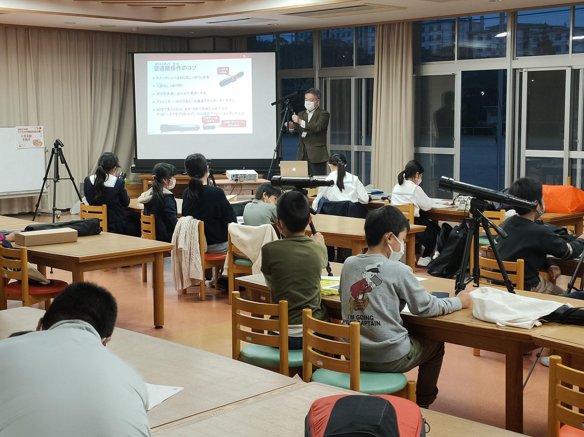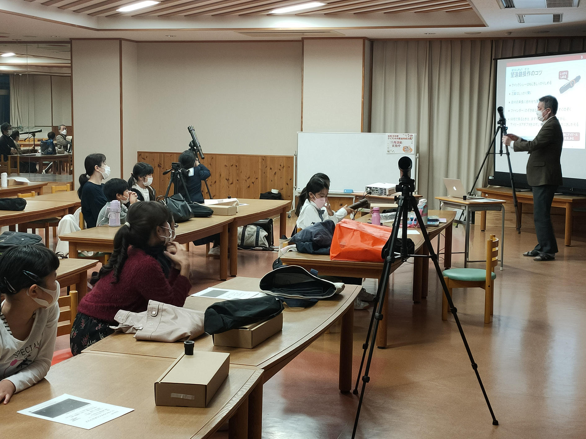 土曜日の夕方、奈良学園大学の嶋田先生が主催していただく「けいはんな子ども天文クラブ」が奈良学園小学校のPMダイニングを活用して開催されました。国立青少年教育振興機構「子どもゆめ基金」の助成により、望遠鏡工作教室として2回の開催です。