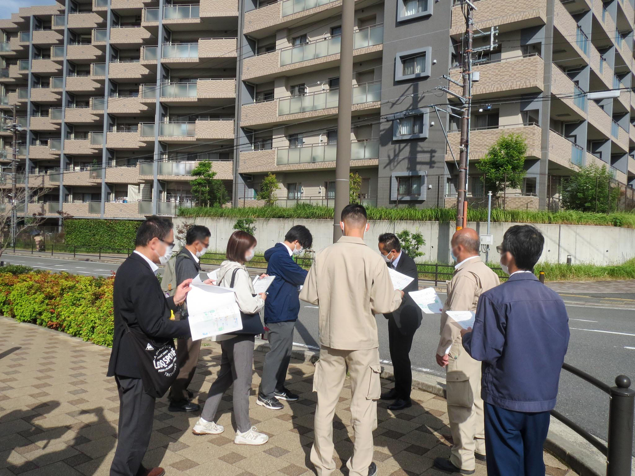 奈良学園小学校では、通学路の点検を定期的に行っています。そして、子どもたちが徒歩で通学する道で、安全に登下校するために必要な箇所を洗い出して、対応してもらうための要望を提出しています。その提出された要望を受けて、担当する方々が集まってくださり、対応について協議する合同点検を行うことができました。