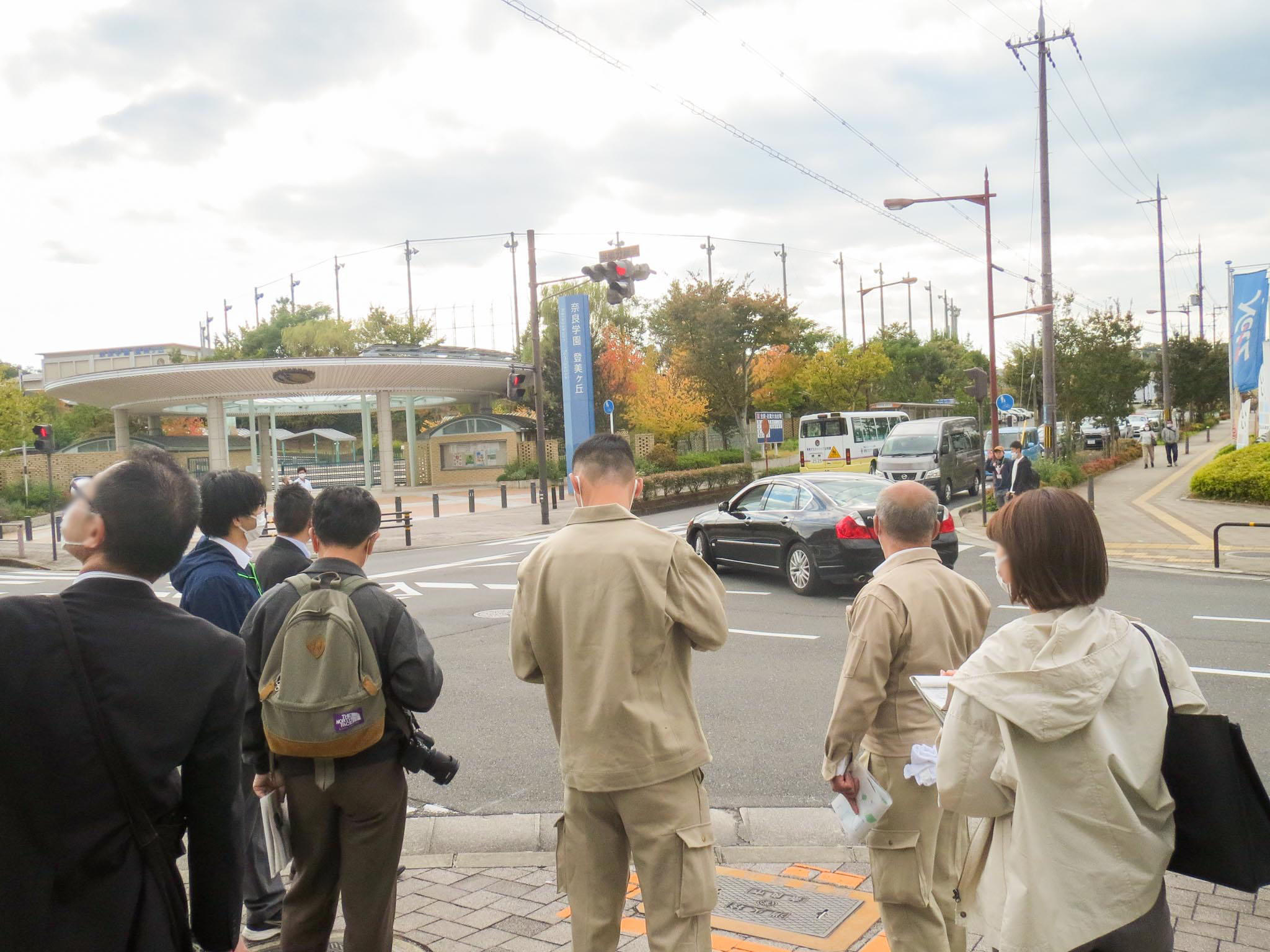 県の私学担当や県教委、警察、奈良市教委、奈良市道路管理者という多くの方々と一緒に、一ヶ所ずつ安全面の対応確認をしました。何カ所か気になっている薄くなっていた横断歩道は、かき直します、として警察の方が写真を撮ってくださいました。