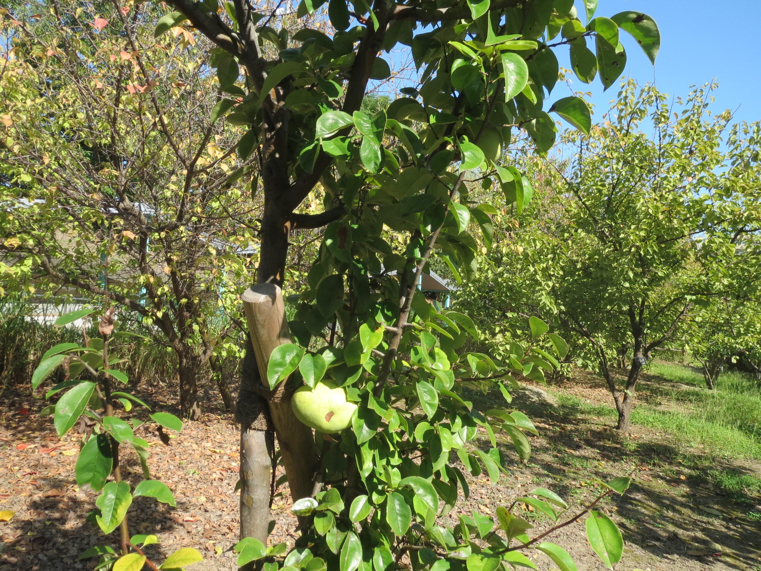 プロムナード沿いにある果樹園に行くと、実のなる木がたくさんの実をつけて、見て見てと子どもたちを誘ってくれています。