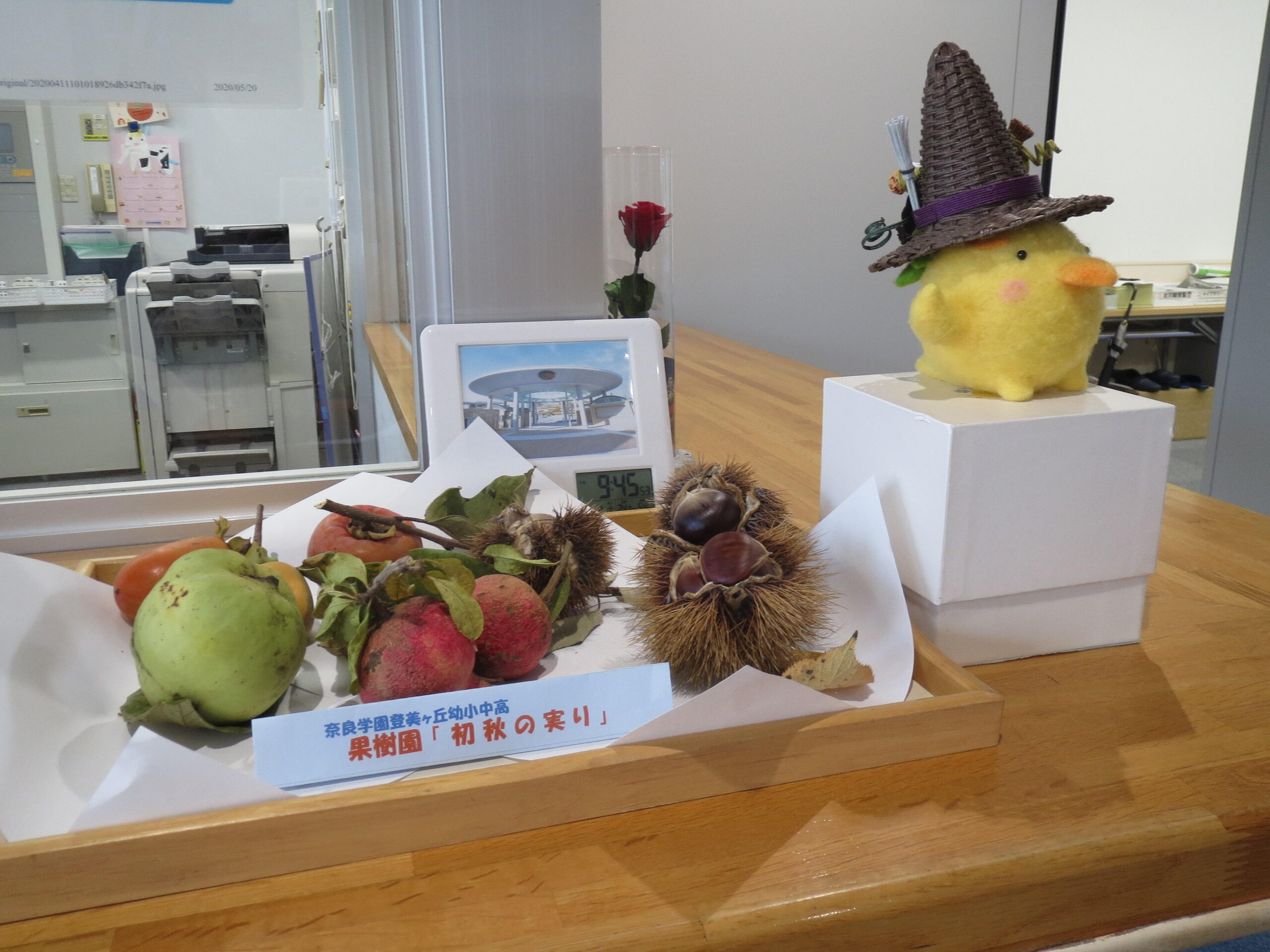 総合事務室の受付前には、「初秋の実り」が「なとみん」と一緒に来校いただいた方々をお迎えしています。