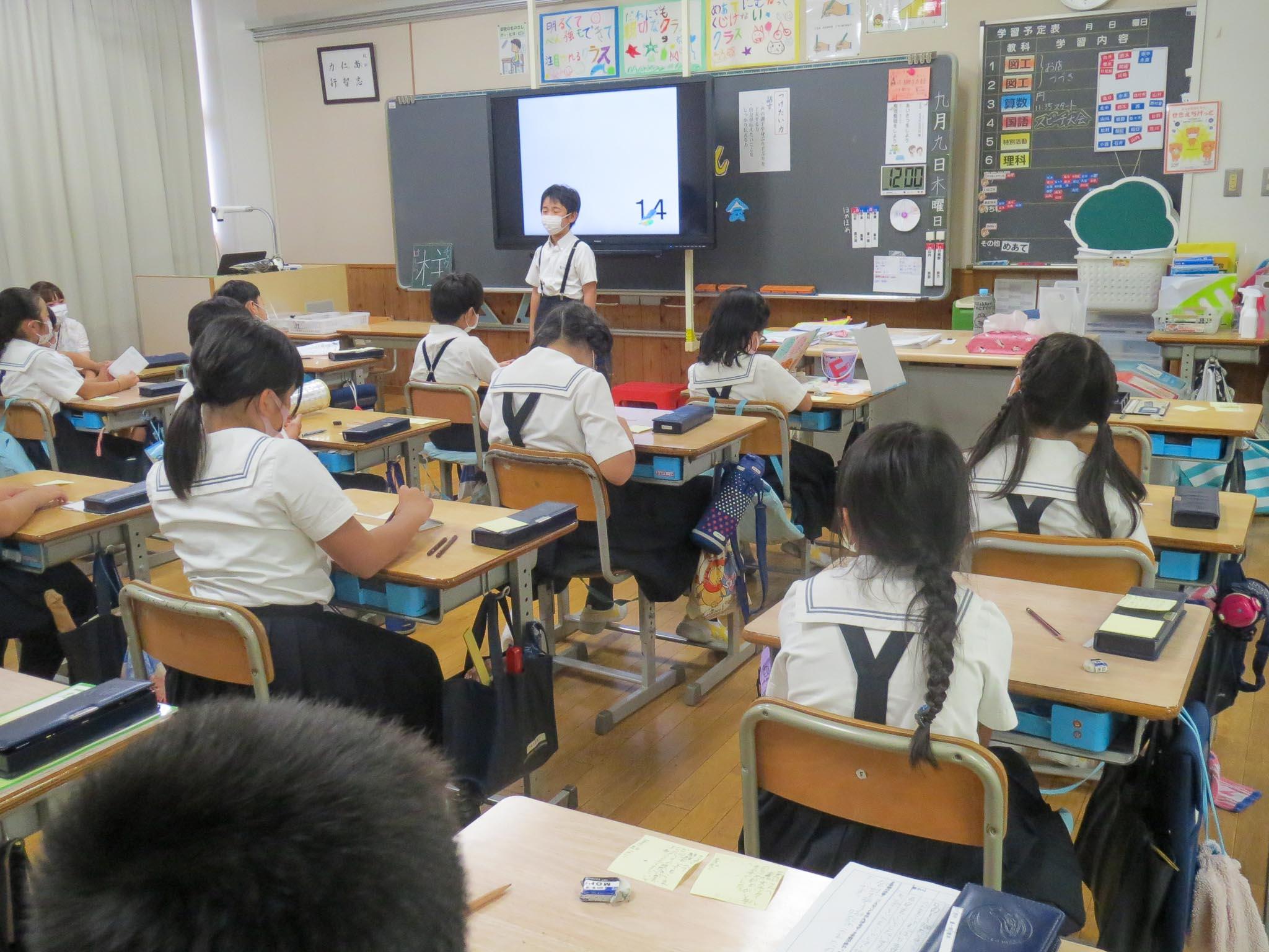 オンライン参観に臨む子どもたちの緊張が伝わってくる雰囲気の中、精一杯やりきろうと思っている一人一人の気持ちが伝わってくる時間でした。