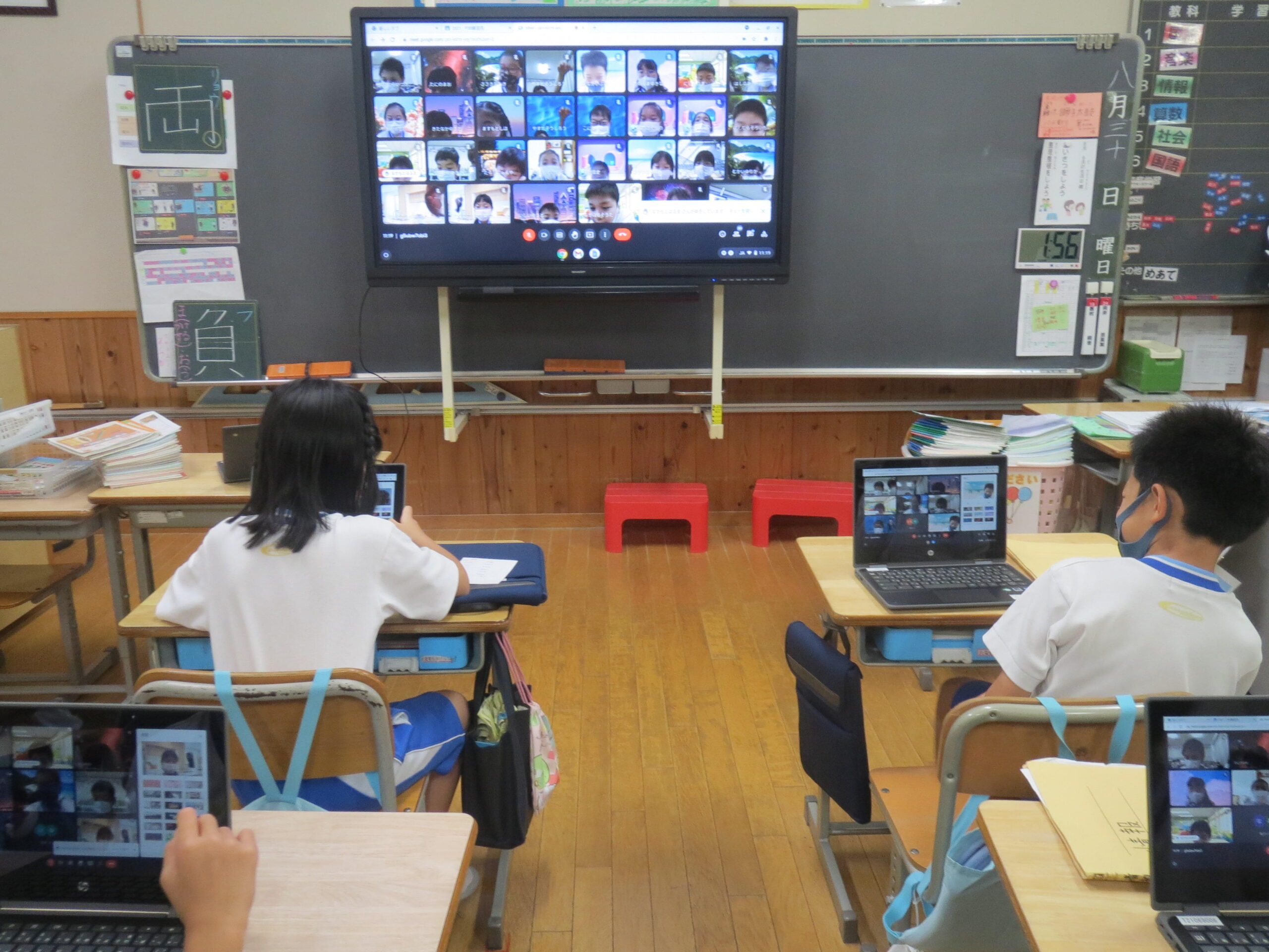自分の顔の背景が変更できることを教わって早速使ってみたり、みんなの顔が画面に集まることを楽しんだり…。新しいスキルを身につけるスピードが本当にはやい子どもたちです。
