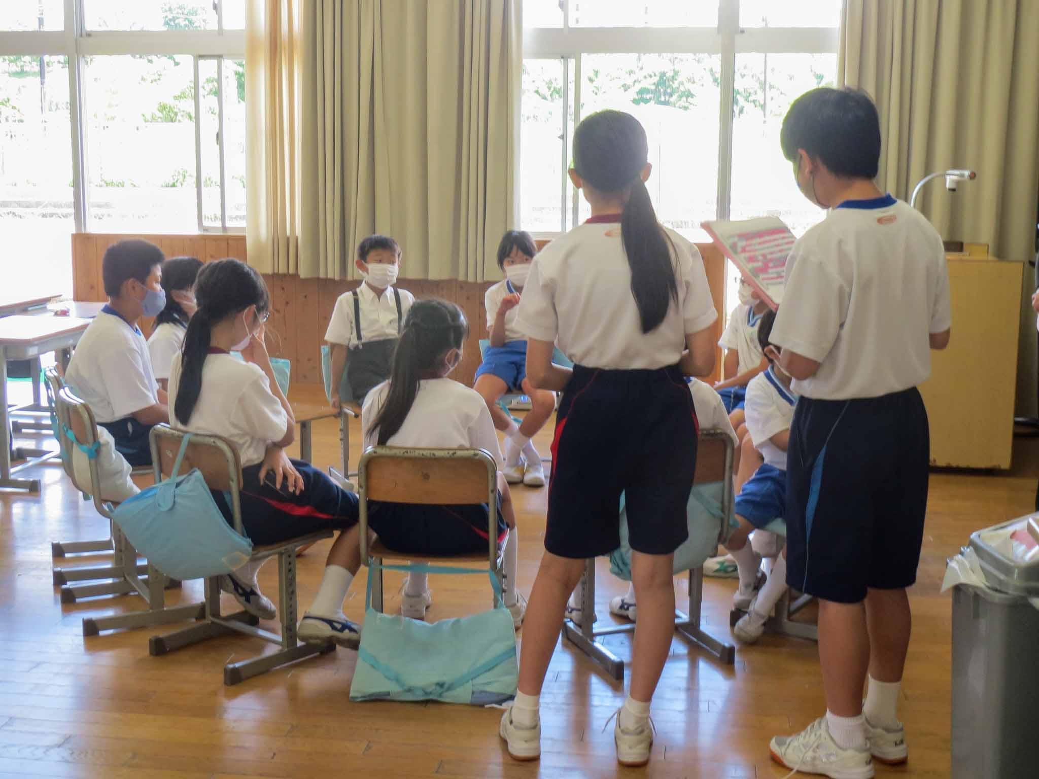 「みんなで協力して楽しく遊べました。自分たちでルールを説明したり、再現したりしてみんなに分かってもらうためにがんばったのでよかったです」「フルーツバスケットで下級生が楽しめるように努力することができました。特に、P1生はあまり学校に慣れていなくて、どんな人になればよいのか決まっていないのでM2生がよい見本になりたいです」「みんなが楽しんでやっていたからうれしかったです。準備したかいがありました。最近は、1~6年までの交流はコロナのせいでなかったから他の学年の名前とかをほとんど知らなかったけど、今回の交流では名前を覚えることができました。また次の交流があるとき、M2生がリーダーシップを発揮してがんばりたいです」
