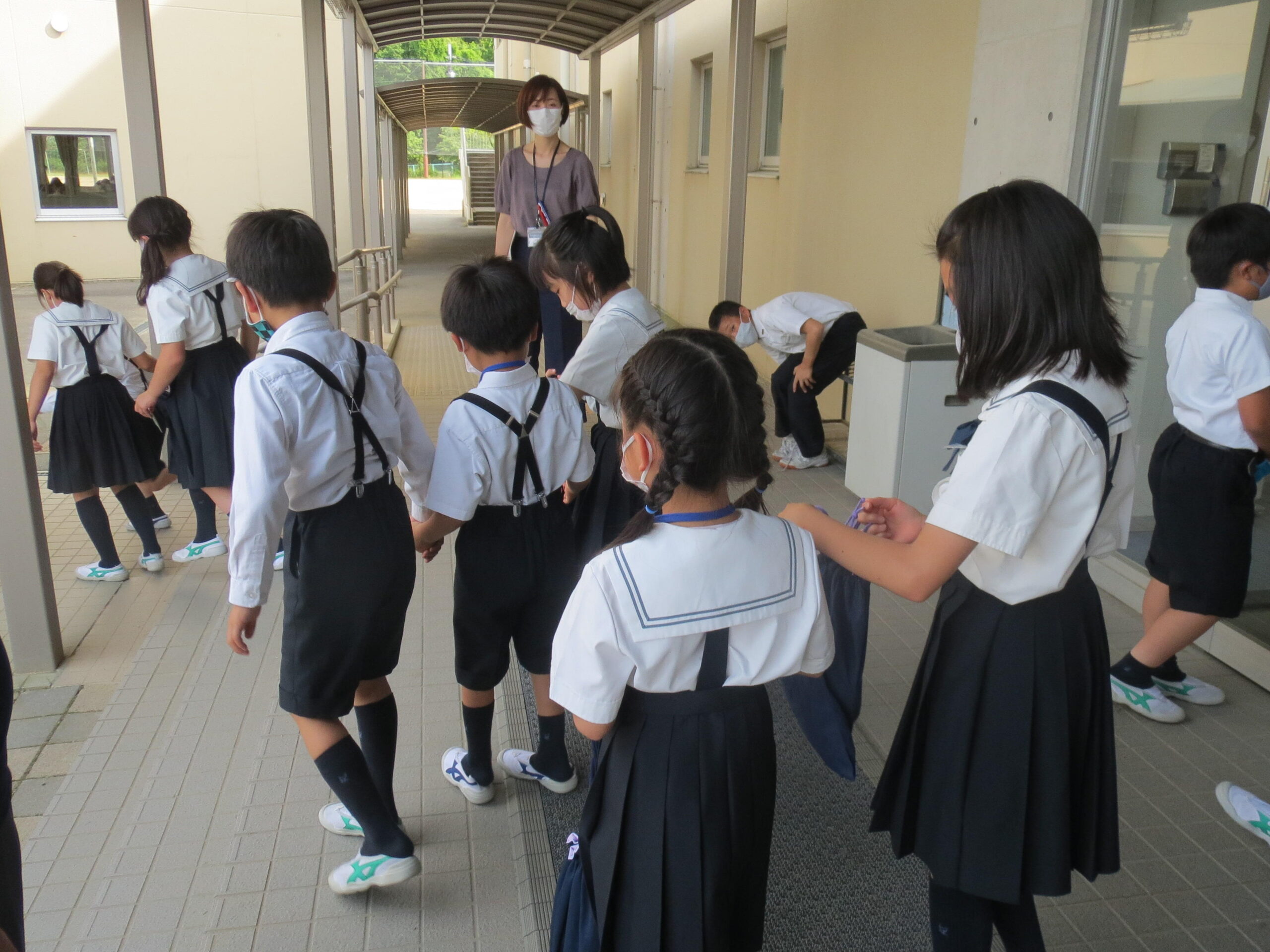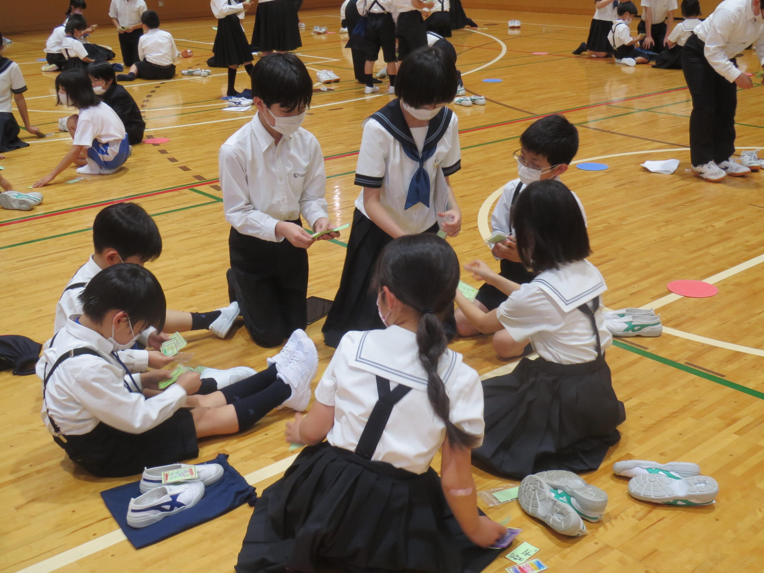 短い時間でしたが、名刺交換をしてクイズを楽しんだ子どもたち。体育館からの帰りは、P棟に帰るP4生がP1生を送って行きました。後ろ姿が楽しかった、と言ってくれています。