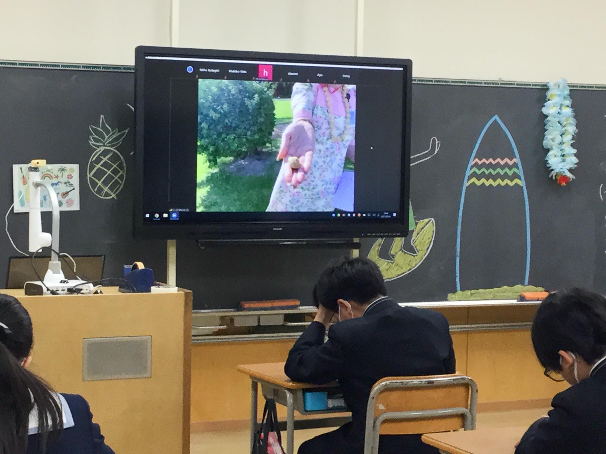 ・この一週間を通して、よりハワイへ行きたくなりました。しかし、その理由が今までとは大きく違います。今まではただ「みんなとハワイへ行ってみたいなぁ。楽しそうだな」という単なるわくわく感でした。でも、今はオンラインでハワイやポリネシアの文化を見て、体験して、「もっと知りたい」「もっと感じたい」と思えるようになったのです。一週間前の自分は、まさか自分がこうなるなんて考えもしませんでした。今は、文化を学びたい強い気持ちが自分の心にあります。……このハワイウィークでたくさんの人、先生が私たちのために協力してくれました。どの人にも「文化を愛する心」が強くあって、言葉にあふれていました。本当に楽しかったです。