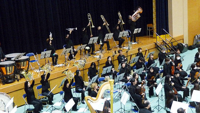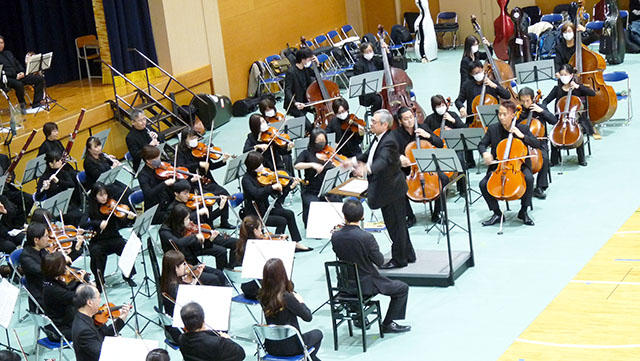 今年の音楽の時間には、マスクなしに思い切って歌を歌うことができず、様々な約束をしながらの授業になっています。そんな子どもたちですから、フルオーケストラの演奏を聴くことができる機会をとっても楽しみにしていました。広い体育館で暖房を入れながら換気をしっかりと行い、マスクをして、お話をしない約束などの感染対策をしっかりしての音楽会です。