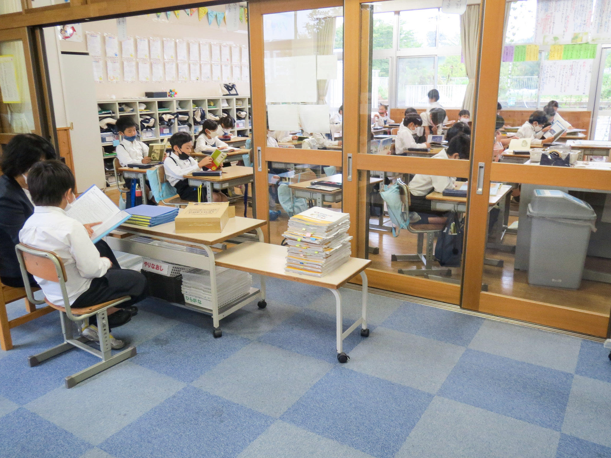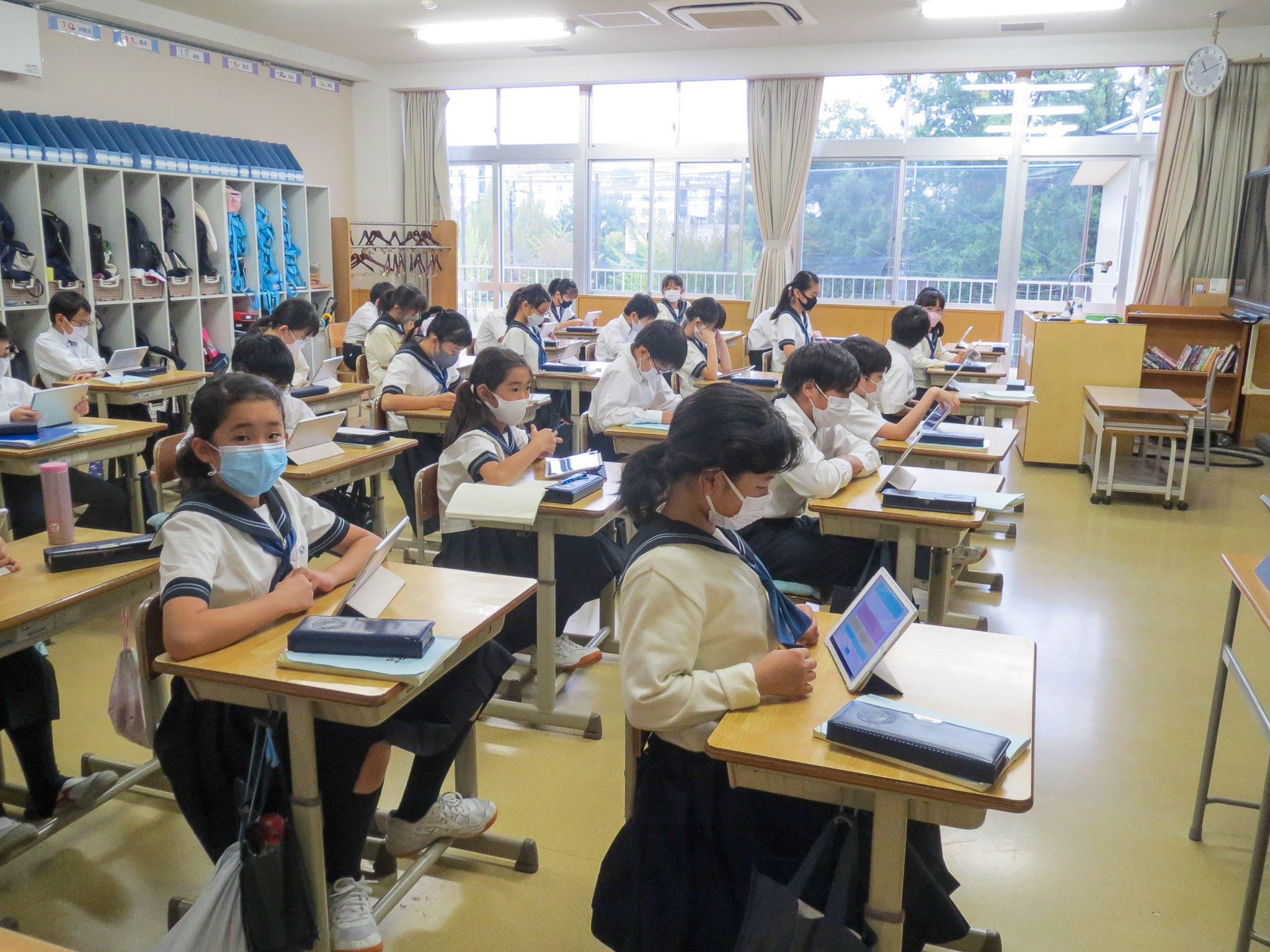 終業式も、感染症対策のために、まだみんなが体育館に集まることはできません。テレビ放送で校長先生の話を聞きました。そのあと、各クラスで前期の振り返りです。前期のめあてを書いたカードに振り返りを書いているクラス。キャリアパスポートといって自分の成長を書き留めるシートに記入しているクラス。前期の出来事の中で一番心に残っていることをクラスのみんなで発表しあっているクラス。ロイロノートを使ってクラス全員の振り返りを共有しているクラス。