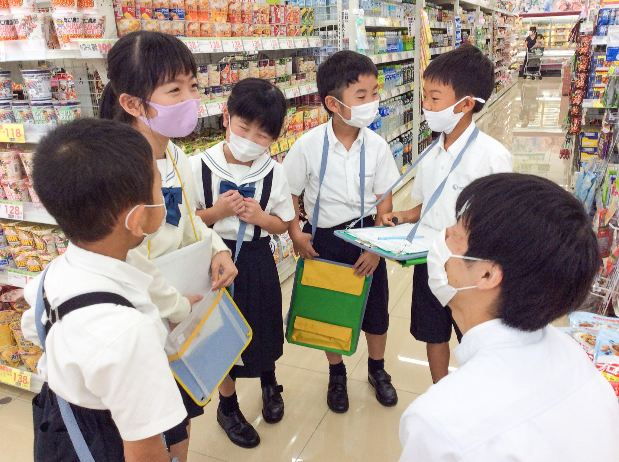 「たんけんばしょ『おぐらさんそう』…おいしさのひみつは、お米をお水にひたすことで、人がやっていることをはじめてしった。おせんべいをつくるときは水のちょうせつがひつようだから人がやっているらしい。…」「たんけんばしょ『ファミリーマート』…ジュースがのっているだいはローラーで、ジュースをとると後ろのジュースが前に行きます。それを見て、ぼくはくふうしているんだなーと思いました。…」