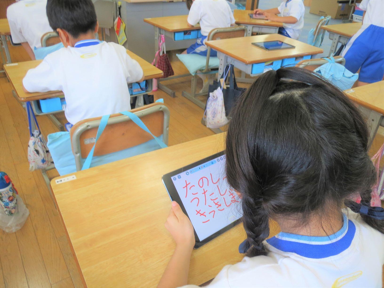 P2(小学2年)生の教室に行くと、情報の時間に、ロイロノートを使って自分の感想を提出する、という活動をしていました。