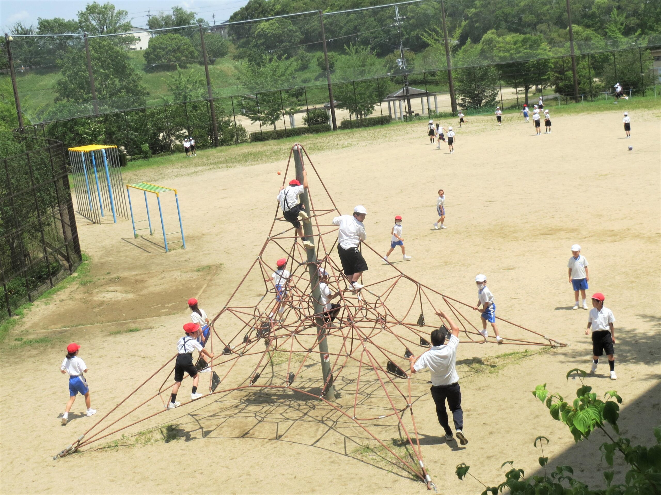給食の後は、平常時より長く休み時間を確保しています。遊びながら生活リズムを整えたり体力を付けたりできる時間です。