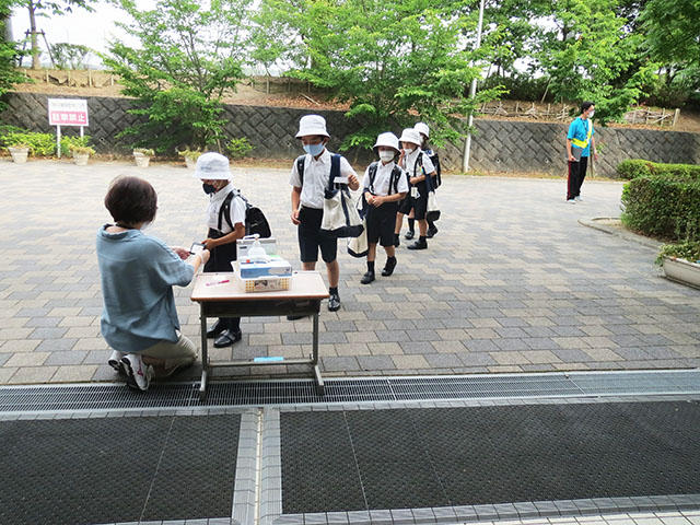 子どもたちが下校した後、学園のフロアや昇降口など、教員みんなで手分けして消毒しています。子どもたちが安心して過ごすことができるように、できる限りの努力をしています。