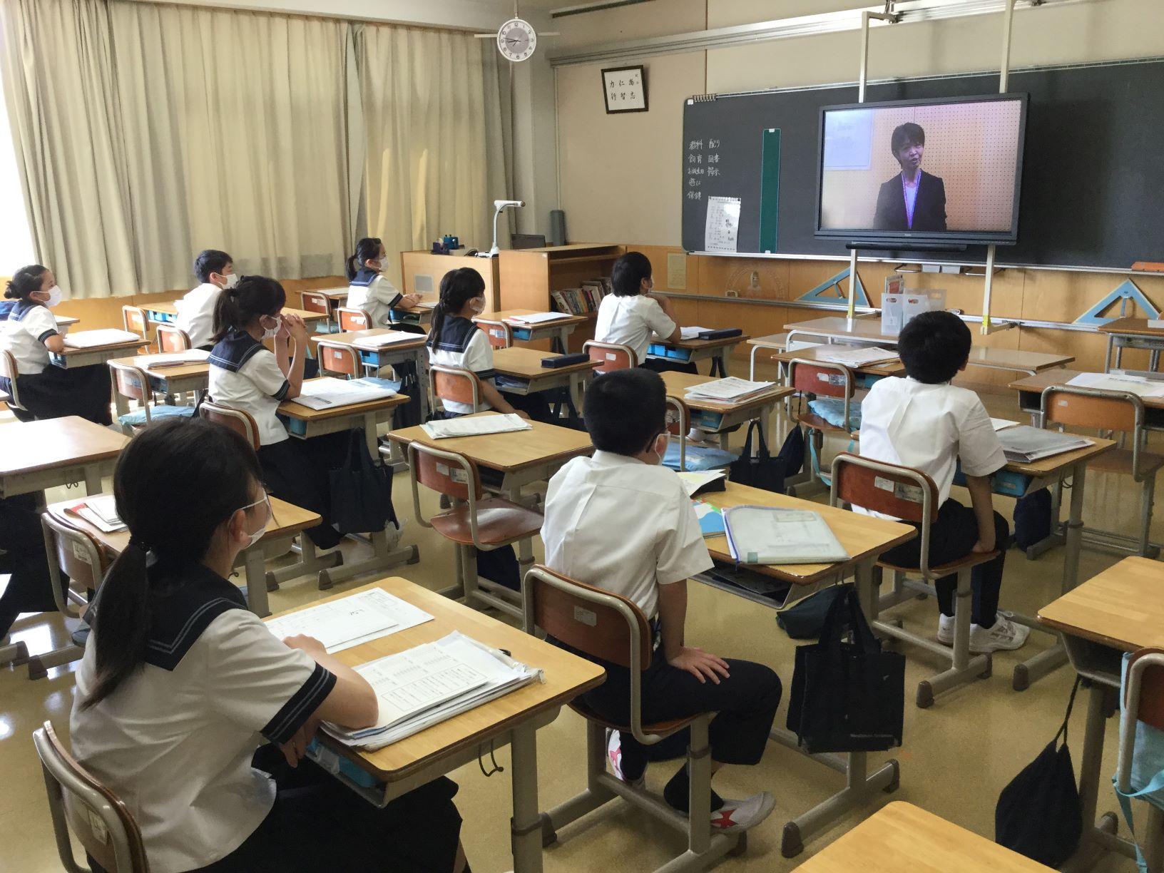 朝、校長からテレビ放送を使って学校再開について話をしました。登下校の約束をこれまで以上にしっかり守ること、学校の過ごし方で新しくできた約束もしっかり守って、ウイルスをもらうことのない生活を自分で考えてできるようにしていきましょう、ということ。休校期間中にロイロノートで本当によく頑張ってくれたけど、その確かめを学校で少しずつしていくので、分かっていなかったなということは、あきらめずに粘り強く先生方の話を聞いてがんばっていけるようにしよう、ということを伝えました。