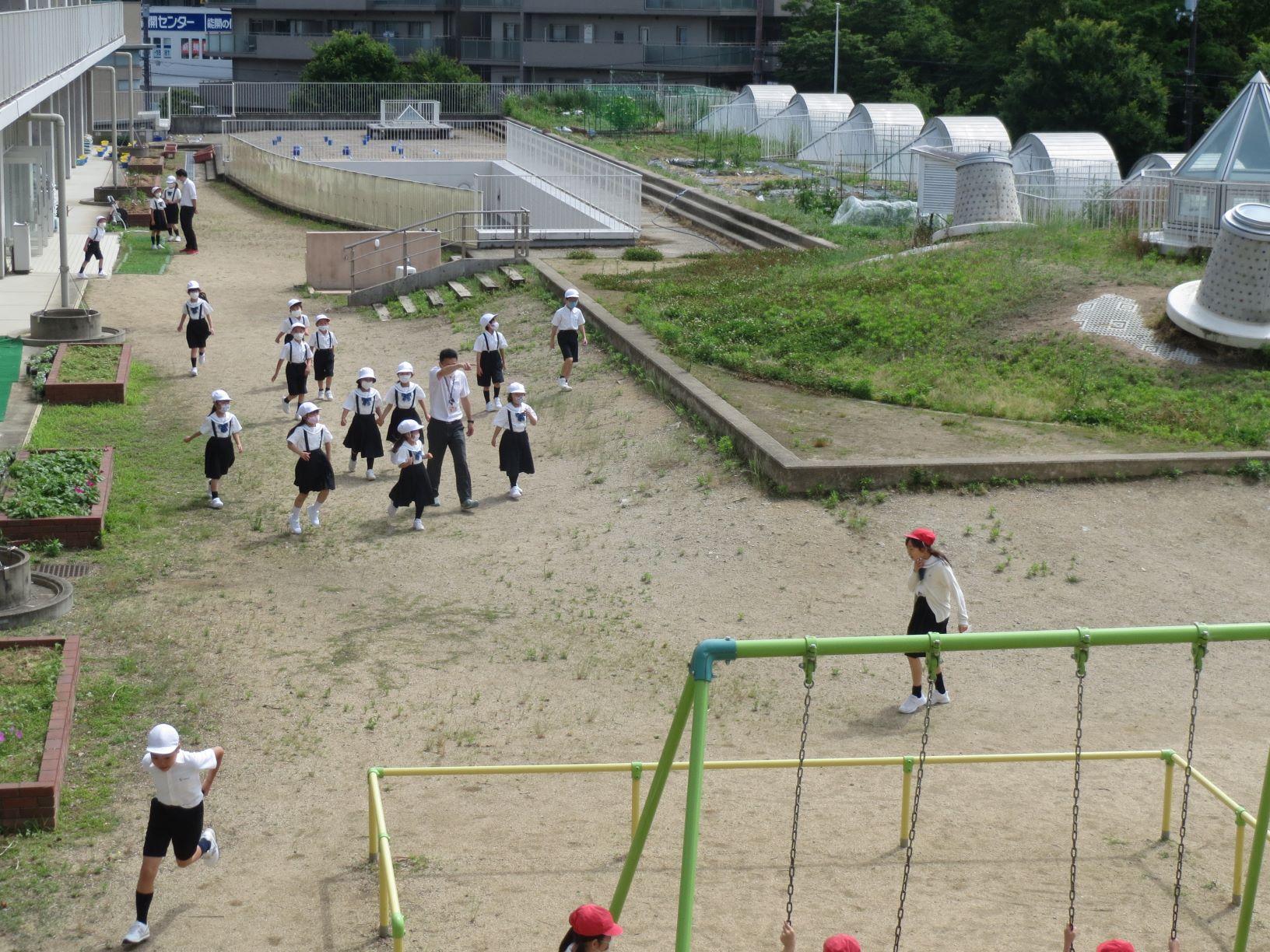 学校では、授業時間をしばらくの間45分から40分に短縮して、子どもたちがゆったりしたり、運動場で思い切り遊んだりできる時間をつくっています。その休み時間には、多くの教員が一緒に運動場に出て遊ぶ姿が見られました。一緒に遊びながら、子どもたちが密になりすぎないように声をかけたり、関わり方の様子を見て声をかけたりしてくれています。