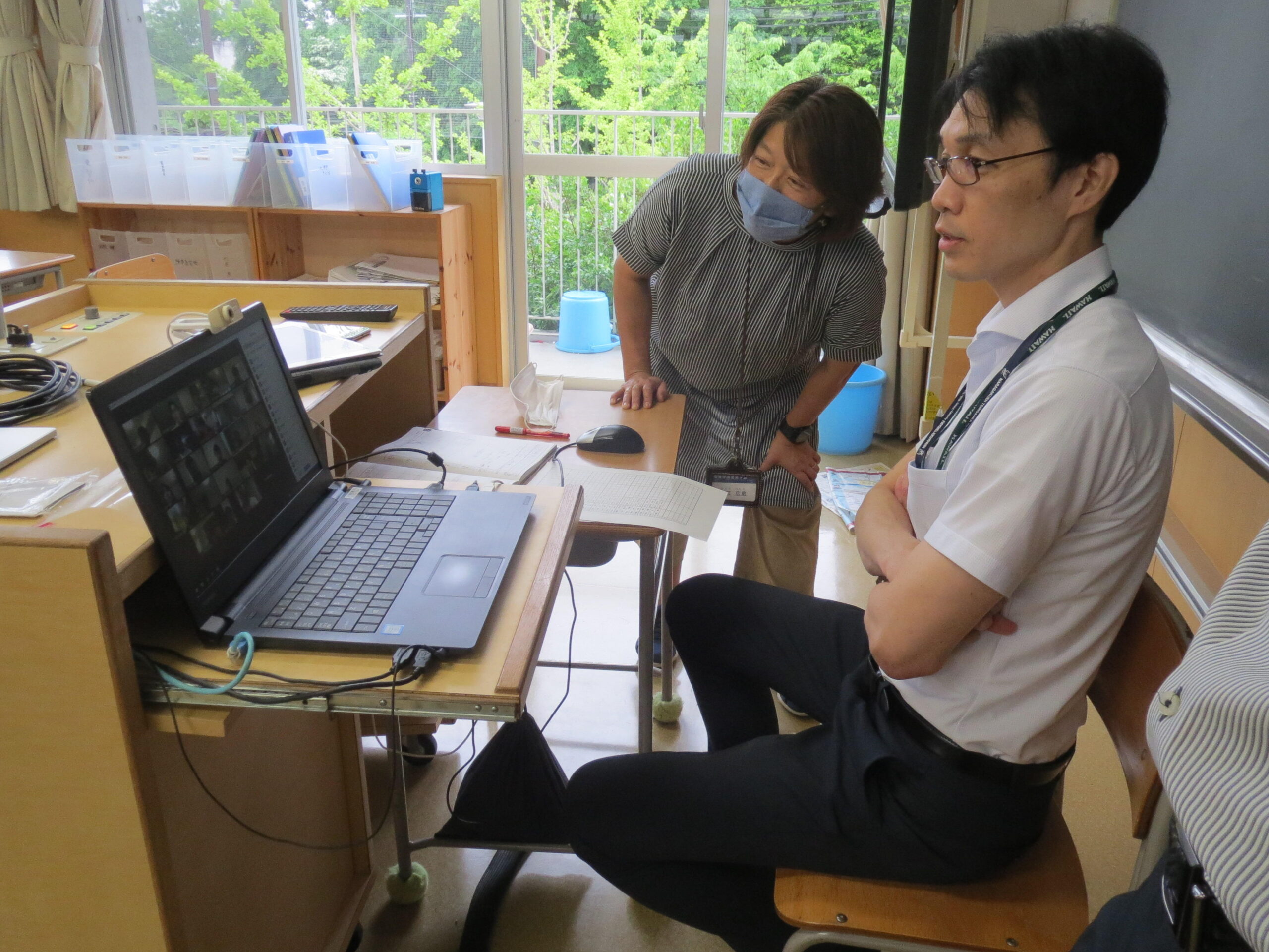 各家庭と学校をつなぐZoomによる朝の会が順調に行われています。