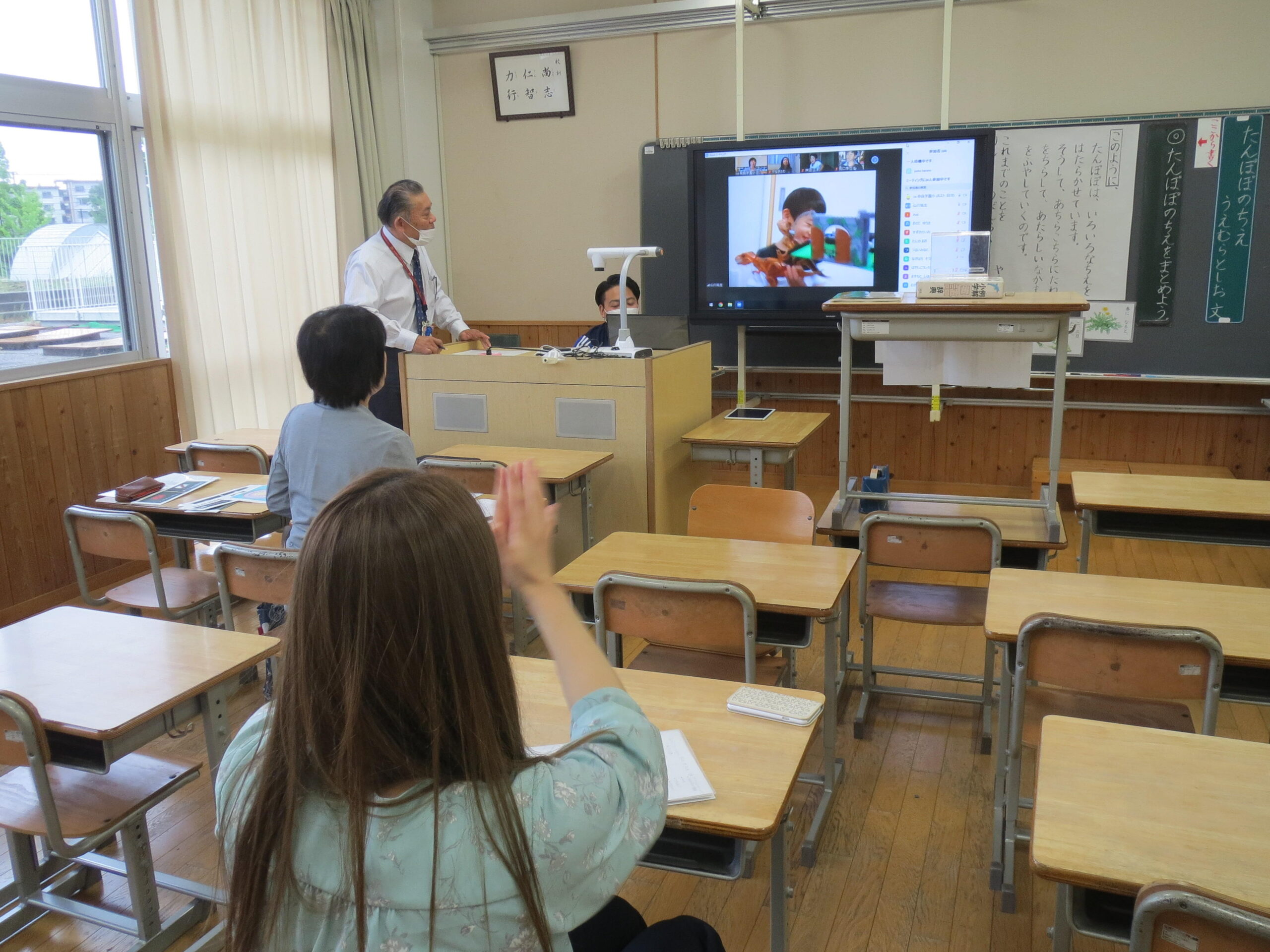 日を追うごとに、子どもたちの笑顔が分割された画面の中いっぱいに広がっています。それに、どの学年も、Zoomのルールをしっかり守って発表者の話を聴くことができるようになりました。ミュートをかけたりはずしたり、低学年の子どもたちも上手に調整しています。朝の会をのぞいてみると…。