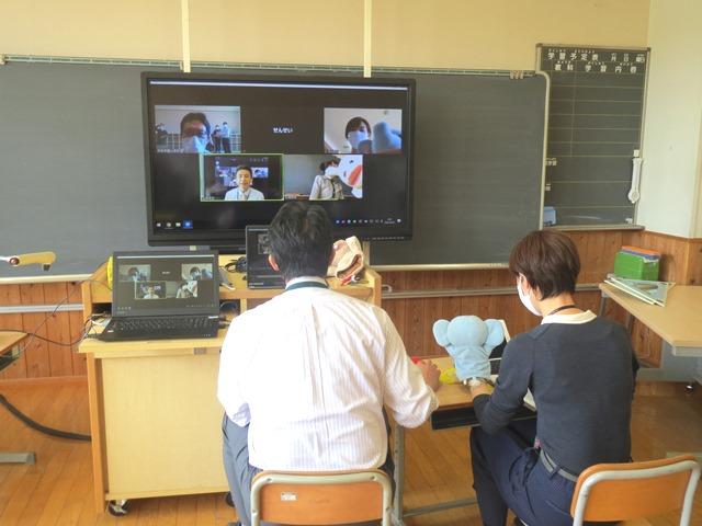 準備として、学校と家庭と、双方向でやりとりができるか、まずは各学年の試行を行い、状況を確認しています。できるだけ参加のご協力をお願いします、と呼びかけたところ、たくさんの子どもたちの顔を見ることができました。集まっていた教員から「あ、元気そう!」「みんなの顔を見ることができてうれしいなぁ」「早く会いたいよ」などの声が聞こえてきました。
