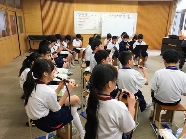 次に、リコーダーを使ってチャールズ・チルトン作曲の「失われた歌」の練習も。2クラス合同での練習だったこともあって迫力のある音に子どもたちは包まれていました。