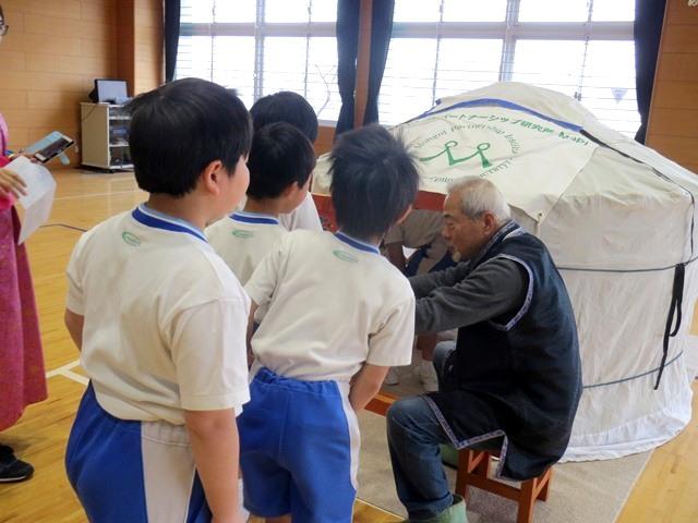 最後に設けた体験の時間には、自分たちが組み立てた小さなゲルに入ったり、馬頭琴を弾かせてもらったり、民族衣装のデールを着せてもらったりして、大喜びでした。