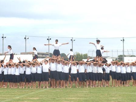 M1生:今日は一年に一度の学校全体の特別なフェスティバルの「合同運動会」がありました。僕が一番心に残ったことはやっぱり「組体」です。ぼくはどの技も基本土台だったので、完成した形が見えなかったけど、お父さんに写真を見せてもらうと、とても大きくかっこよかったです。そこからぼくは改めて、みんなで力を合わせるとこんなものができるんだなと思いました。