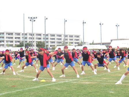 P3生の競技はY1(中学3年)生と一緒に「おさるのかごや」、P4生の競技はPP1・2(年少・年中)生と一緒に「手をつないでレッツゴー」、演技はP3・P4一緒に「COOL JAPAN ~111人の侍たち~」でした。