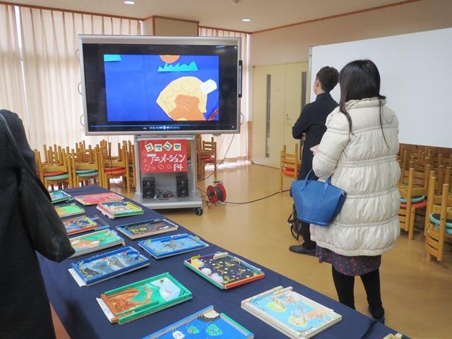 テレビに映っているのは、グループ作品「コマコマアニメーション」。昨年度のPP・P尚志祭(幼稚園から小学校4年生までの学習発表会)の一コマです。鑑賞に来てくださった保護者の方々も、子どもたちの思いが伝わる作品に見入ってくださっていたのを覚えています。