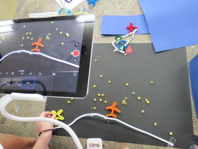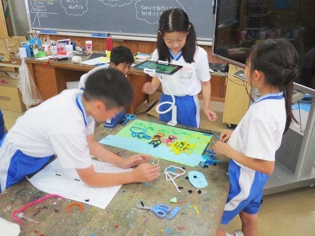 一つ一つの画面を一生懸命につくってく子どもたち。9月に入って始まった活動ですが、そろそろ各グループのストーリーが見えてきました。「みんなと協力する力」や「どんな材料があうか考える力」、「なめらかな動きにしたりわざを使ったりする力」をつけよう、と呼びかけて学習活動が続いています。コマを進めるために、少しずつ動かしたり、新しい場面だと分かるような風景を挿入したり、気持ちを表す言葉を入れたり、「!」「?」などを入れたり…。コマを動かすこととともに、どんなストーリーで何を伝えたいのか、制作したり話し合いをしたりしながら活動しています。話し合いの中では、当然違う意見が出ることもあります。そんなときには、納得するまで話したり先生に相談したりして、よりよいものになるようにあきらめることなくいろいろな工夫を続ける子どもたちの姿があります。