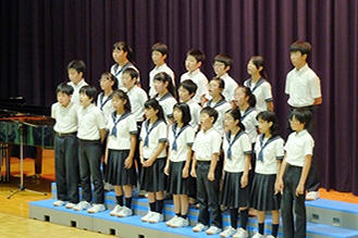 ・今日の一大イベントの合唱コンクールがありました。教室で声出しをしたとき、クラスが一つになった感じがして、自信がつきました。昨日見た動画は、声がすごく小さかったので、それと先生の注意を、始まる前に心の中で思い出しました。そして、舞台に立つと、すごく緊張しました。でも、悔いが残らないように自分でできることがしっかりできたと思うので、いい思い出になりました。一日目は、悔いが残らないようにした充実した日でした。(M2)