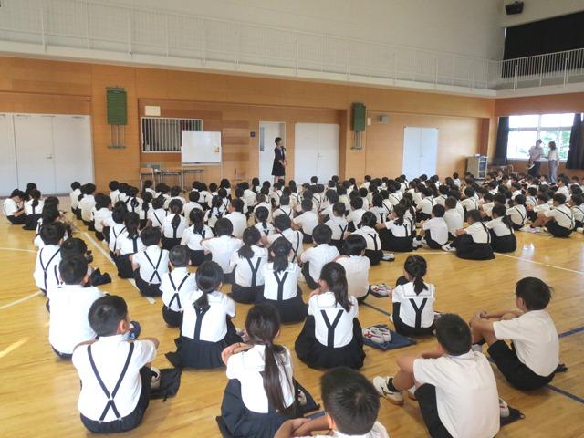 その後、P体育館で行われた始業式では、1学期末より少し大きくなった子どもたちが、しっかりと話を聴いてくれました。夏休みを終えて、2学期に向かう準備がしっかりできているよ、とどの学年も言ってくれているようでした。始業式を終えた各教室では、久しぶりに子どもたちが意見を出したり夏休みの報告をしたり…。9月に入ると、夏休み作品展が参観日にあわせて行われるのですが、今からとても楽しみです。