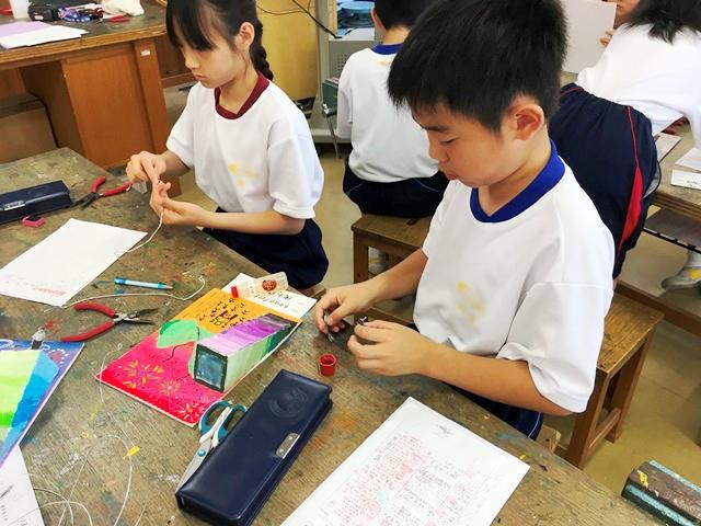 作品に向かう子どもたちからは、「プライマリーだった4年生までの図工と違って、一つ一つの技術ができていないと、思い通りに作品ができない…」「色からイメージしたことをオリジナルで創っていけたことがよかった」など、ミドル課程になった自分やそこでの向かっていこうとする力を感じている言葉を聞くことができました。