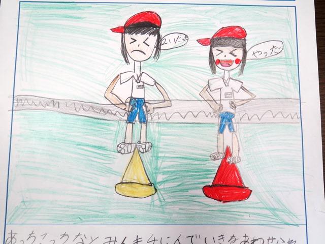 「もくひょう」みんなでかっこよくしたいです。50めえとるそうをがんばりたいです。あっちこっちなとみんをがんばりたいです→50めえとるそうがすきでした。2いだったのでうれしかったです。