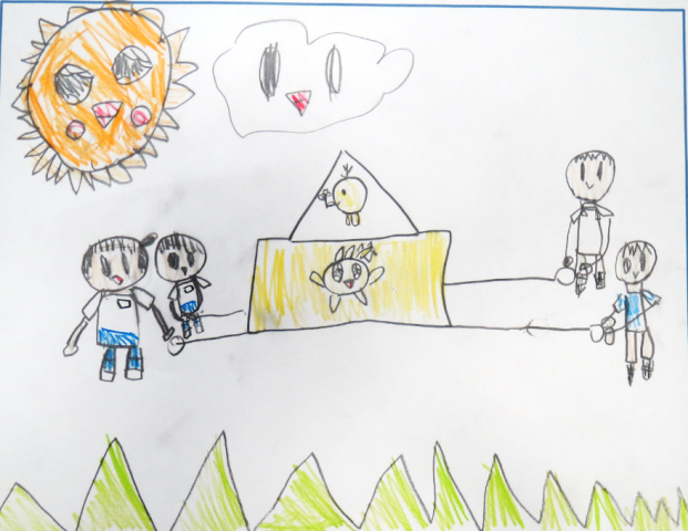 P1生であっても、何かに向かって取り組むときには、目標と振り返りをするのが当たり前になってきています。習ったばかりのひらがなだけで書き表すことはとても難しい時期でもあります。絵で描き、それに言葉を加えてくれました。