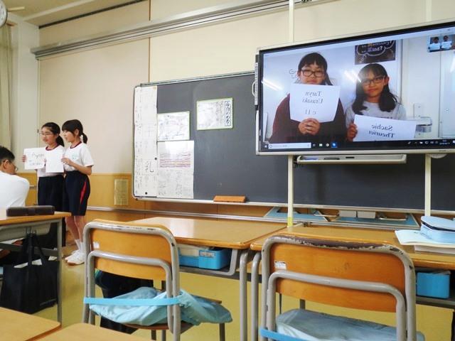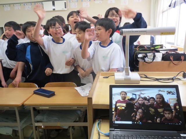 などとたどたどしいものの一生懸命PCの上に設置されているカメラに向かって話しかけます。ハワイからも自己紹介の声が聞こえ、時々質問もされるのですが、なかなかそれに答えることは難しい様子でした。でも、「楽しかった」「何を言っているのかわからなかった」などと言いながらも、ペアと顔合わせができたことをとても喜んでいる表情の子どもたちでした。ハワイへの期待感がより膨らんでいきます。