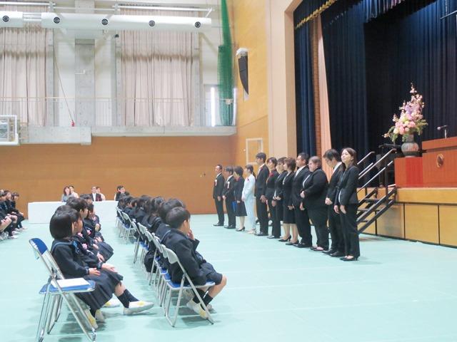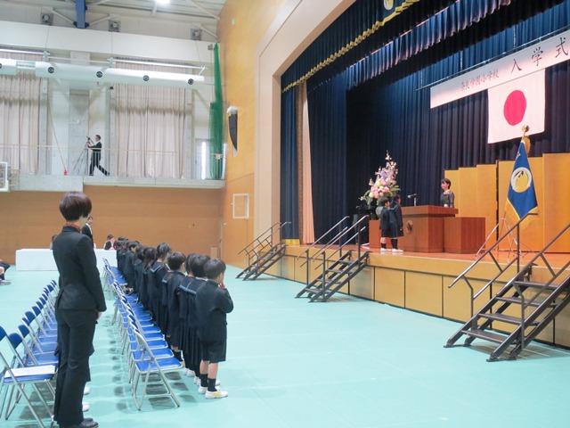 代表の子どもたちの誓いの言葉の一部です。「たくさんのおともだちをつくって、いっぱ いあそんで、いっぱいべんきょうします。きゅうしょくもいっぱいたべて、からだをうごかして、もっともっとげんきになります。せんせい、おにいさん、おねえさん、よろしくおねがいします」とても元気よく述べてくれました。聞いていた人みんなが、学校が始まり、1年生の教室に元気な声が響き渡るのが楽しみになりました。