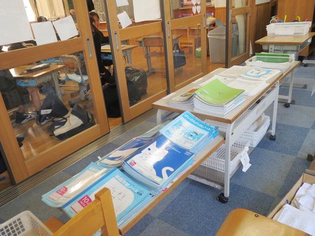 たくさんの作品や宿題を提出した1月8日の始業式。