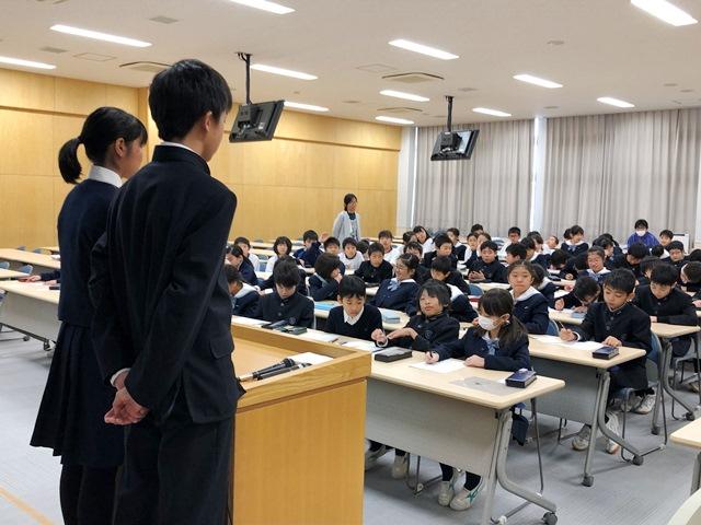 Y1生はもう2人出てくれて、M2生に語ってくれました。これも、子どもたちが話をしてくれたY1生に書いた手紙から語りの内容をのぞいてみます。「今日は、これからある入試のことや来年から始まる新しい中学校生活のことなどを教えてくださってありがとうございました。お話を聞いて、緊張感のある入試前日や当日の過ごし方や勉強の取り組み方がしっかりと分かったので、今日教えていただいたことを使いたいと思いました」「今、ぼくは入試に向けて何をしたらいいのか迷っていました。分からないところをほったらかしにしていて、先生に聞く勇気が出ませんでした。しかし、このままだと中学校になって後悔する、小学校の問題はできないといけない、ということを話してくれたので、自分が今このまま内部進学してもみんなに追いついていけないということが分かりました。アドバイスを参考にしていきたいと思います。ありがとうございました」