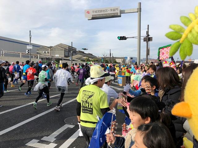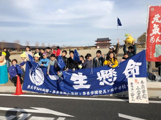 12月9日に開催された奈良マラソン。およそ12,000人の参加者に、本学園より9名の教員も含まれていました。奈良学園登美ヶ丘として、「奈良マラソンを応援します!」ということで、朝8時半から朱雀門前にブースを設置。ご自宅が近くの方も遠くの方も、子どもたちを引き連れて保護者の皆様にお集まりいただき、ランナーに応援の声を届けました。「お父さんが参加しています」という方もおられ、「がんばれー」の声にも力が入りました。