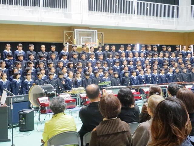このリハーサル後、さらに練習を重ねて迎えた10日(土)。保護者の方々に聴いていただく音楽会当日となりました。さすがに、両学年とも緊張した表情の子どもたちではありましたが、練習を重ねてきましたので、指揮をする教員をしっかり見ることで落ち着きを取り戻し、合唱・合奏に向かうことができていました。体育館に集まっていただいたたくさんの保護者の皆様の空気も、リハーサルの時のP生が食い入るように聴いてくれていたものといっしょです。