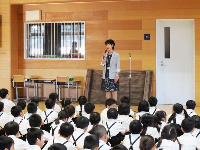 新しい友だちの歓迎のあいさつ、2年生の先生方から「なわとび板」の紹介もありました。「なわとび板」は、子どもたちにもっと体を動かすことの楽しさを味わってほしい、ということから先生たちの手作りです。板の上に乗って飛ぶと、いつもよりジャンプしやすくて、二重とびにもチャレンジする子どもが増えると思います。