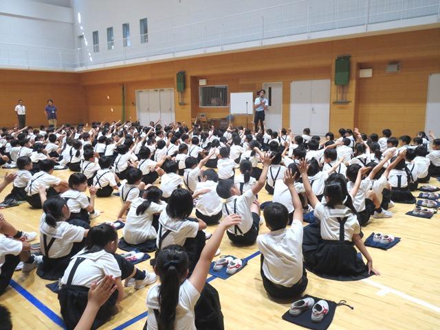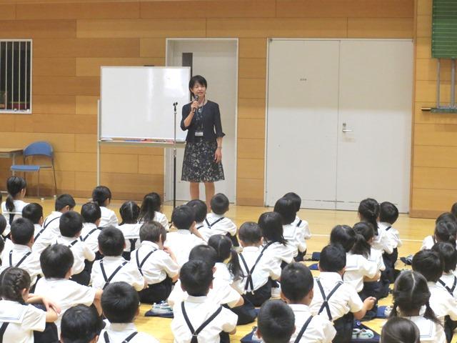 P生の1学期最後の日、朝一番にP体育館に集まっての終業式がありました。