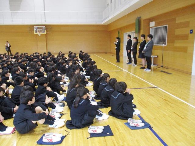 M1・2生も2時間目に、MY合同での始業式です。MY体育館でありました。大変多くの児童生徒が集まっての始業式。Pを修了して初めてこの雰囲気に入ったM1生は、少し緊張した表情で式に臨んでいました。