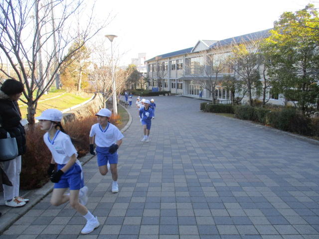 各学年の総合グラウンドでのマラソン大会は、厳しい寒さの上に風も吹いていましたが、応援に来ていただいた保護者の方々の大きな声援を力に、熱気のこもった時間となりました。P4(小学4年)生は2.1㎞、P3(小学3年)生は1.8㎞、P2(小学2年)生は1.5㎞、P1(小学1年)生は1.2㎞の距離を、芝生の総合グラウンドの周りとプロムナードを使って走ります。走ることが得意な子どももいればそうでない子どももいます。大切なことは、自分の弱さに負けずに走ることができるか、ということです。どの学年の子どもたちも、勢いよくスタートを切りながら、自分のペースを最大限維持しての走りでした。でも、うれしかったのは、男子が走っているときの女子の応援。女子が走っているときの男子の応援。スタンドから精一杯の声を出して「がんばれー!」の声に最後まであきらめずに走りきることができた子どもたちも少なくなかったはずです。